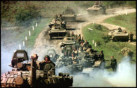 Fig.16 - O contraste. Ao fundo, tanques russos,