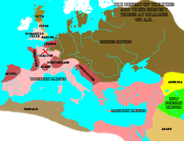A derrota dos hunos (bárbaros) e as tribos de 451AD